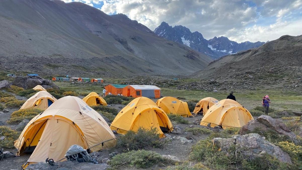 Al final, luego de un nuevo cruce a caballo, sobre una vega hermosa, espera el campamento el Campamento 1, “El Barroso”, donde las empresas disponen de carpas comedor, carpas para el pernocte y buena comida y bebida.