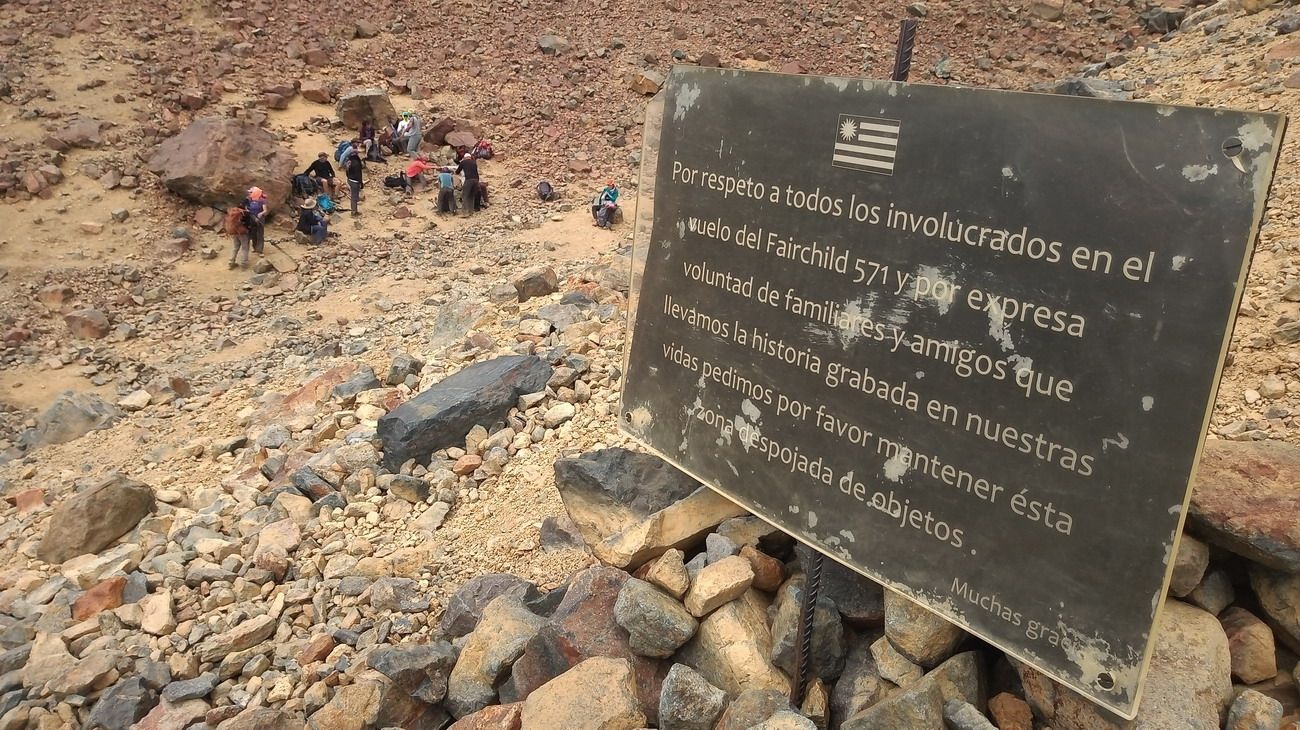 Hablamos de homenajear en silencio, sin selfis, sin comentarios estúpidos, sin risotadas: eso es lo que impone el lugar. Hay allí, como testigos de lo vivido, un montón de piedras, una cruz de metal, recuerdos con frases sentidas, rosarios por doquier, vírgenes de yeso, carteles con mensajes, cruces con cristos, pequeñas lápidas, banderas uruguayas, pelotas y camisetas de rugby y trozos de avión que nadie, bueno, casi nadie osa llevarse.