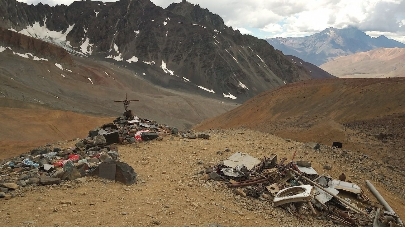 Está también el “Memorial”. Fue erigido allí por militares uruguayos que visitaron el sitio poco después del hallazgo de los supervivientes. Ellos fueron los encargados de enterrar los restos, prácticamente óseos, que hallaron. Los dejaron, se sabe, en una fosa común: el “Memorial”.