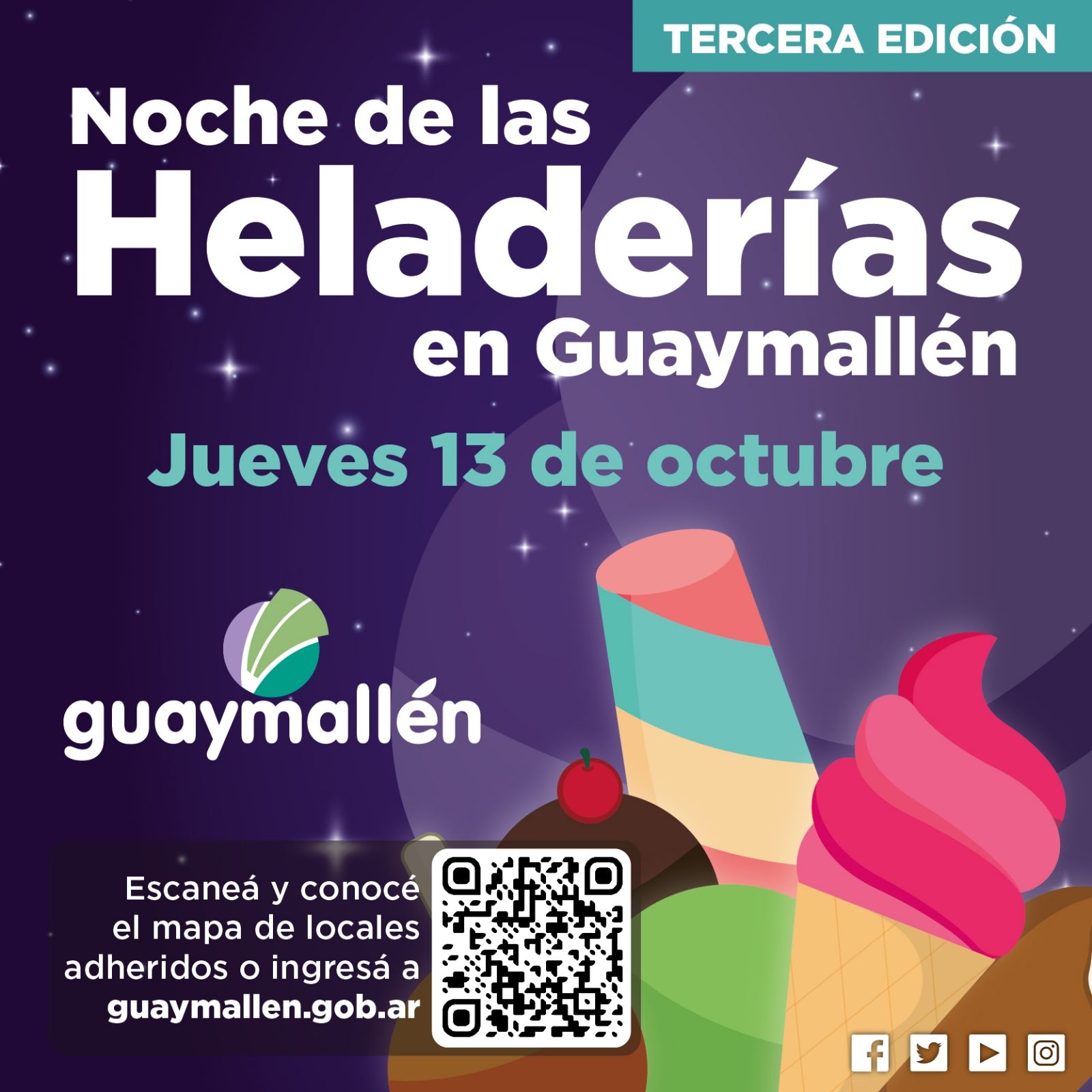 Con el fin de promover el desarrollo económico y comercial, la Municipalidad de Guaymallén celebra este jueves 13 de octubre la tercera “Noche de las heladerías”. Será desde las 19, con la adhesión de una gran cantidad de locales gastronómicos del departamento dedicados al rubro del helado que ofrecerán importantes beneficios.