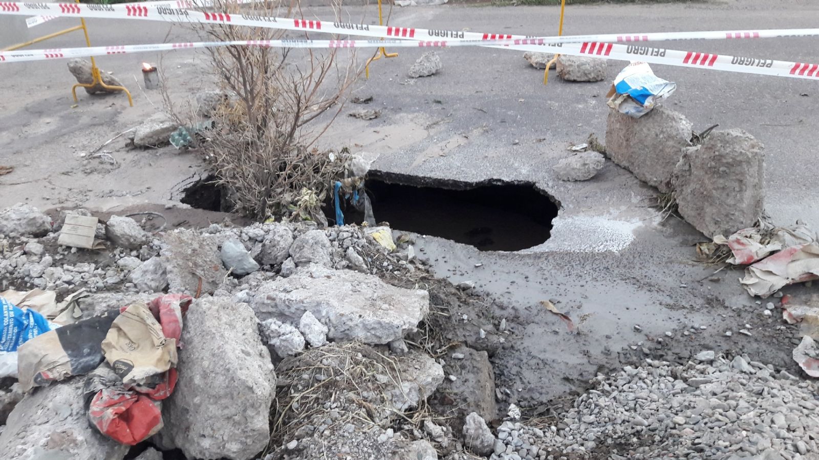 A principios de 2021, una fuerte tormenta provocó que, de forma espontánea, un enorme socavón se abriera en medio de la calzada. Los vecinos procuraron señalizarlo tras dar aviso a las autoridades, pero no se trataba de un problema nuevo. Quienes llevan más tiempo viviendo en la zona aseguran que los años de agua y cloacas siempre les provocaron más de un dolor de cabeza.