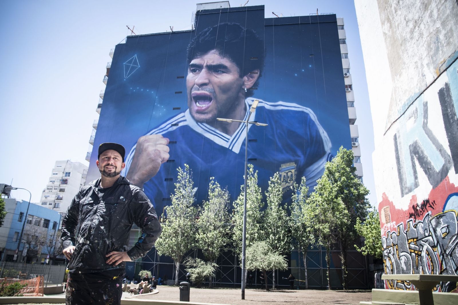 Ahora, en coincidencia con la fecha de su cumpleaños, el próximo domingo 30, día en que el astro del fútbol hubiera cumplido 62 años, se inaugurarán dos murales gigantescos en Buenos Aires, "los más grandes del mundo", uno en la zona de San Cristóbal, realizado por el artista Martín Ron, y otro de Maxi Bagnasco en un edificio de Ezeiza que podrán ver todas las personas que llegan a Buenos Aires en avión.