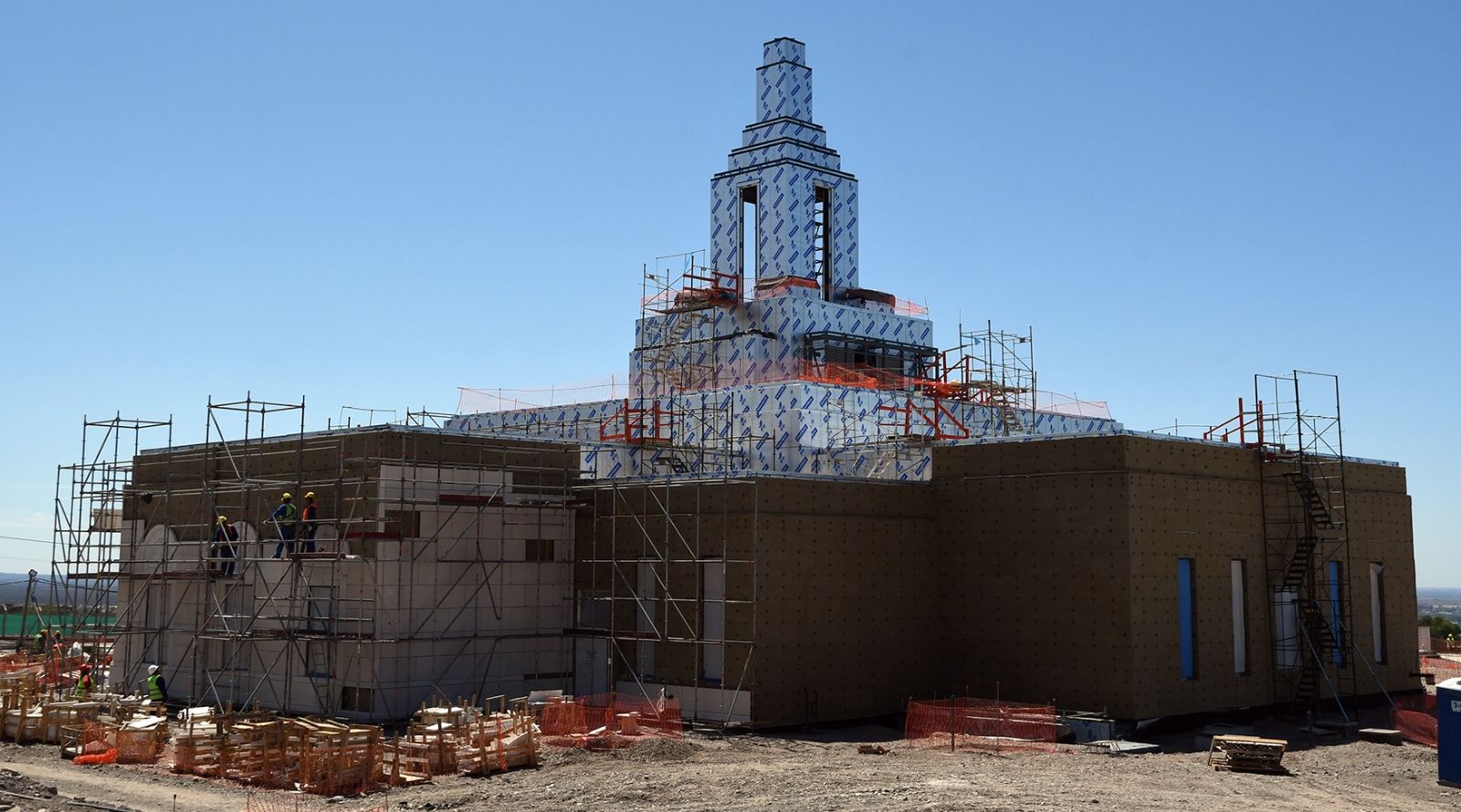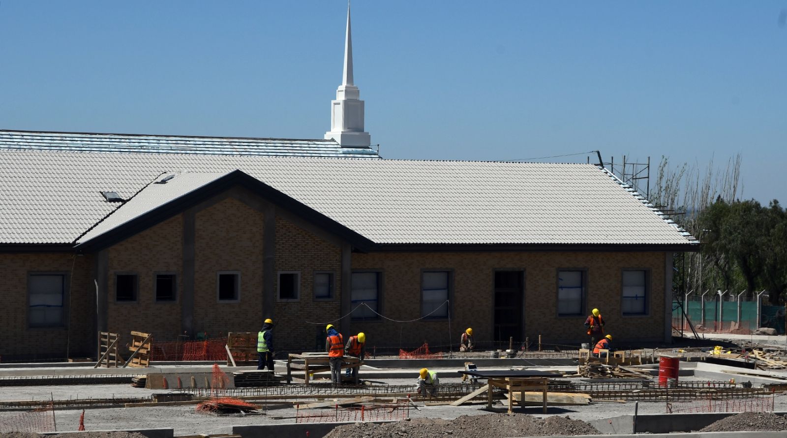 La obra resalta por el volumen de la construcción, en particular por la cúpula que asoma y se ve desde lejos. Más, porque se trabaja sin freno, incluido feriados. Cerca de la avenida Champagnat, en Las Heras y Capital, se construye lo que será uno de los templos mormones más grandes del país. La Iglesia de Jesucristo de los Santos de los Últimos Días levanta allí también todas las instalaciones conexas.