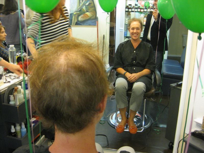 La caída gradual del cabello es una de las consecuencias de la quimioterapia. Aquí Sarah se prepara para que le rapen la cabeza cuando su alopecia se vuelve muy evidente.