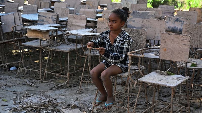 Una niña en Honduras en lo que quedó de su escuela tras el paso del huracán Eta en 2020. Los huracanes son más difíciles de atribuir que las olas de calor.