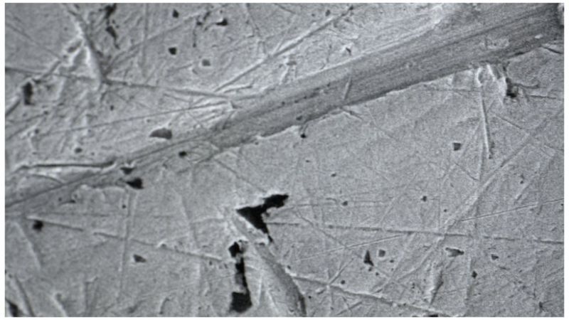 Bajo un poderoso microscopio, los investigadores pudieron ver rasguños causados por el roce de las monedas en circulación