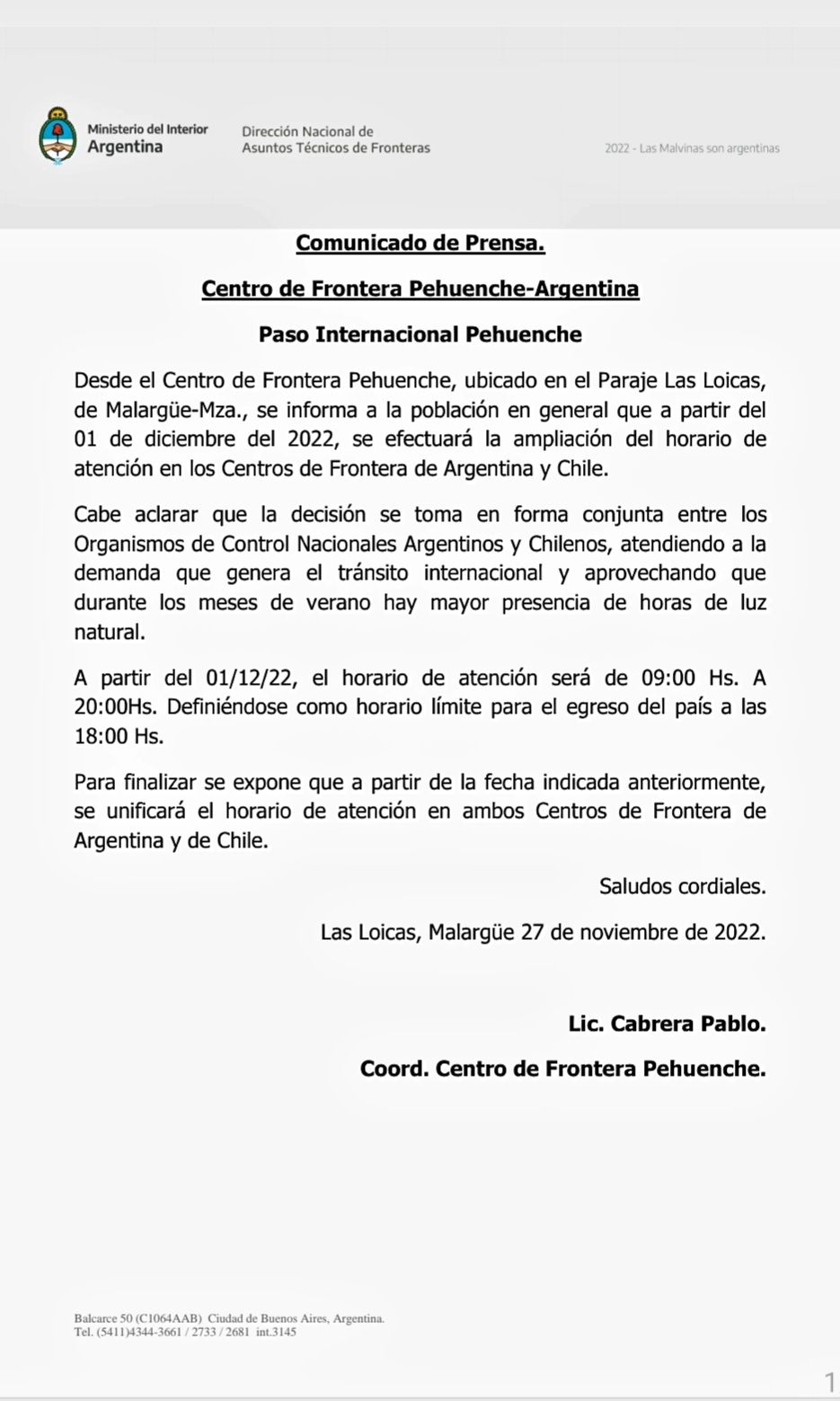 Desde la Coordinación del Paso Pehuenche anunciaron una importante novedad que beneficiará al turismo y a todos los viajantes que opten por cruzar la frontera utilizando el camino ubicado en el sur de Mendoza.