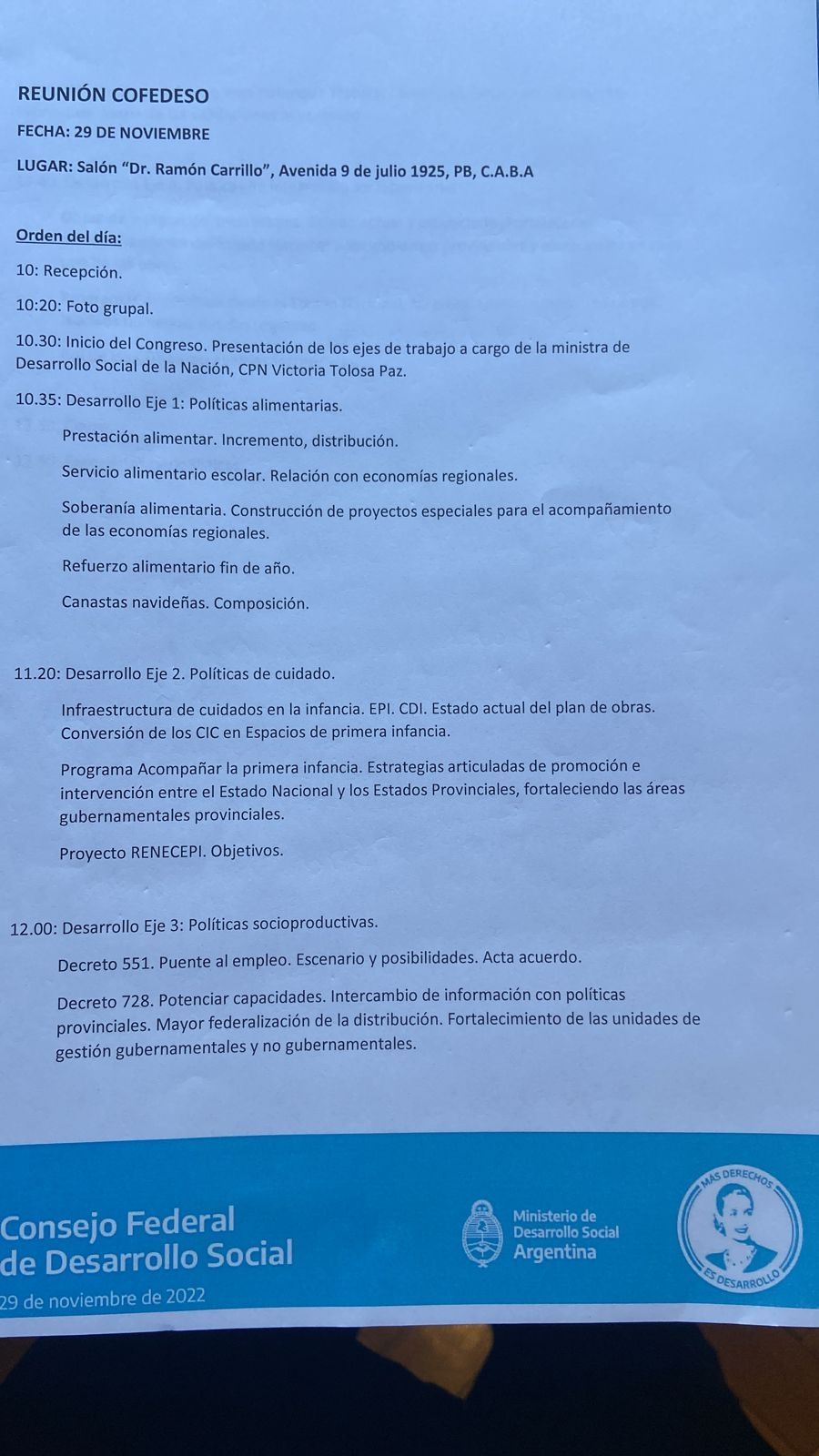 El Gobierno quiere que diciembre llegue de la forma más calma posible, y que pase lo que pase en el Mundial de Qatar 2022, el humor social se mantenga en paz de cara al siempre agitado fin de año. MDZ accedió en exclusiva al documento en el cual Victoria Tolosa Paz confirmó que el Gobierno dará un refuerzo alimentario que rondará los 45.000 pesos para quienes están en las ciudades y conglomerados del interior, cuya inscripción ya está planificada y fue expuesta hoy en el Consejo Federal de Desarrollo Social.