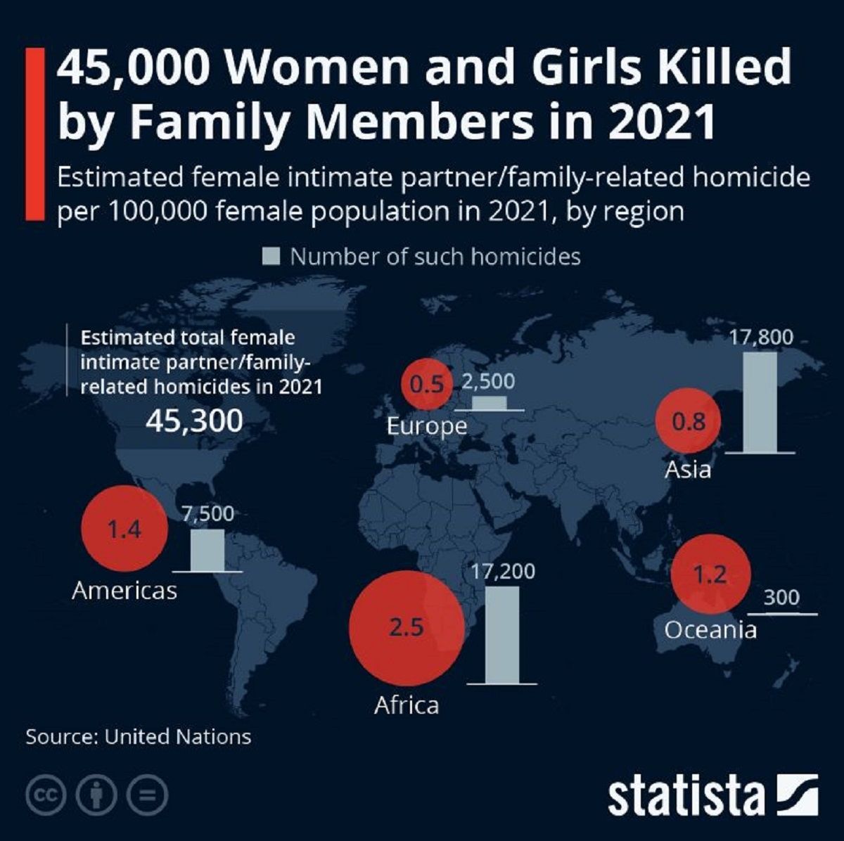 En términos globales, el mundo no le encuentra solución pero combate el tema: de todas las mujeres y las niñas asesinadas en 2021, alrededor del 56% fueron asesinadas por parejas íntimas u otros miembros de la familia (45.000 de 81.000), lo que demuestra que el hogar no es un seguro para ellas. La problemática global es la misma que en Argentina: no se sabe cuántas mujeres realmente son, y se destinan mayores presupuestos pero no se obtienen grandes resultados, así lo explicó también el informe que realiza cada año la ONU y su correspondiente área de género.