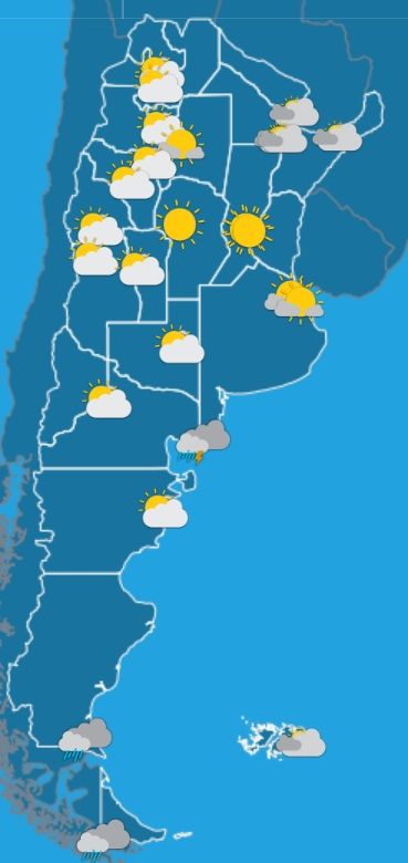 Mañana, en tanto, el cielo también estará algo nublado y pasará a mayormente nublado por la tarde con una marca mínima de 14 grados y una máxima de 27, mientras que para el sábado se aguarda un cielo parcialmente nublado con temperaturas que irán de los 18 a los 29 grados.