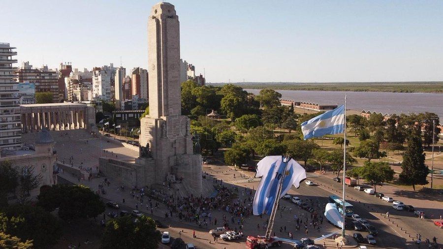 Cientos de personas realizaron este sábado un "banderazo" en Rosario, tierra de Lionel Messi, y se concentraron en torno al Monumento a la Bandera para apoyar a la Selección argentina de cara a la final del Mundial de Qatar en un clima de pasión y bajo la camiseta albiceleste más grande del mundo.