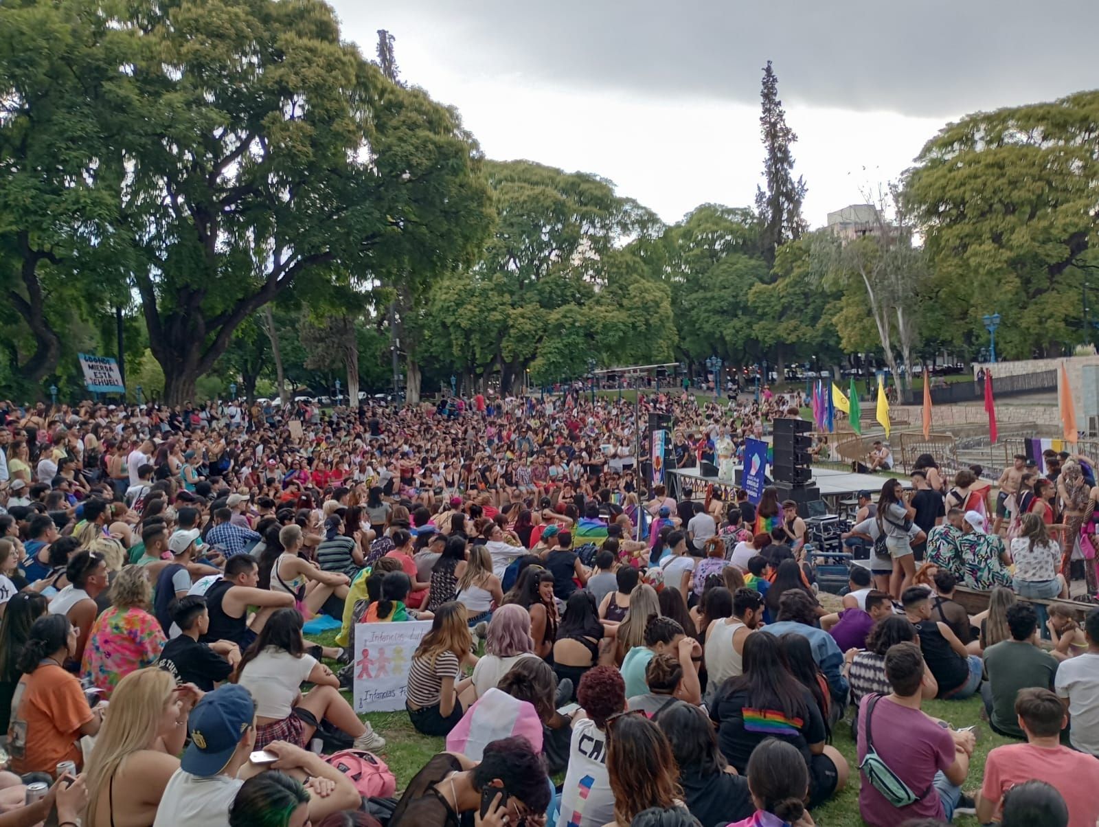 La concentración comenzó a las 17 en calles Pedro Molina y San Martín, para pedir derechos como personas lesbianas, gays, bisexuales, trans, travestis, intersex, queers, no binarias, asexuales y demás identidades (LGBTTIQNBA+).