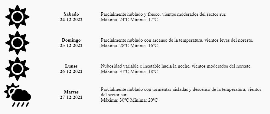 Luego de varios días de calor intenso y agobiante en la provincia de Mendoza, el ingreso de un frente frío hace que las altas temperaturas den un respiro en la Nochebuena y Navidad. Se espera un fin de semana con máximas que se ubican por debajo de los 30 grados.