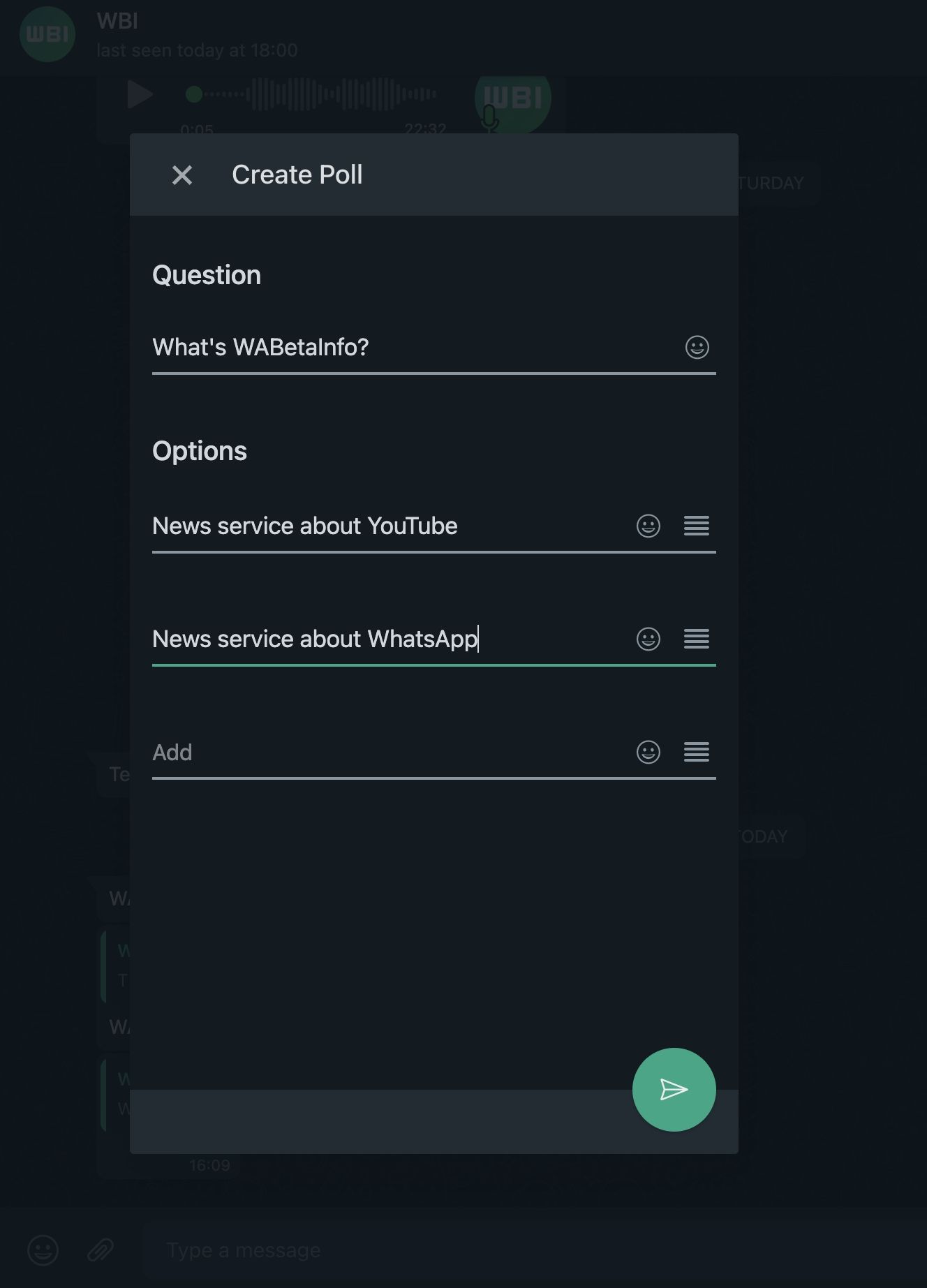 Al igual que sucede en WhatsApp para Android e iOS, es posible crear encuestas dentro de un chat individual o grupal y puedes agregar hasta 12 opciones después de ingresar tu pregunta.