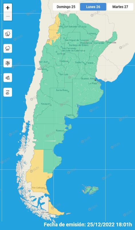 La temperatura mínima esperada será de 18° y la máxima llegará a los 31º. La página oficial del SMN indica que en la cordillera de los Andes las condiciones meteorológicas serán inestables, con probabilidad de precipitaciones en Uspallata y Punta de Vacas.