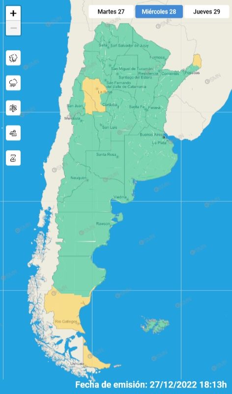 La temperatura mínima esperada será de 18° y la máxima llegará a los 30º. La página oficial del SMN indica que en la cordillera de los Andes las condiciones meteorológicas serán inestables, con probabilidad de precipitaciones en Uspallata y Punta de Vacas durante la mañana y la tarde. Hacia la noche hay pronóstico de nevadas en esta última localidad de montaña.