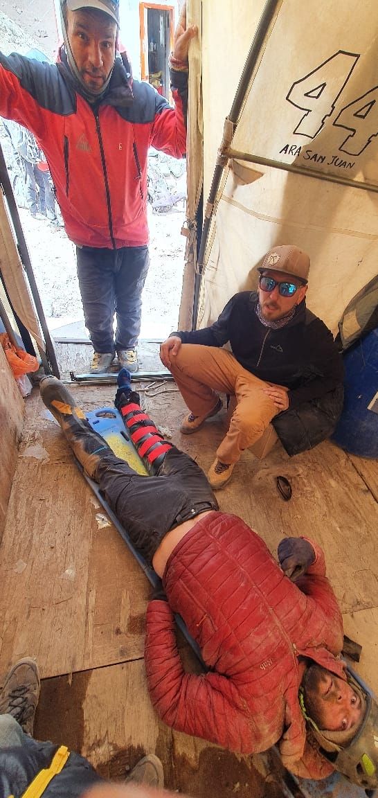 Cuando el equipo llegó a Plaza de Mulas con el herido, se realizaron las tareas de auxilio, analgesia y se constata una lesión traumática de rodilla derecha. "Ya estabilizado el paciente se evacua vía helicóptero hacia horcones, dónde es esperado por el servicio coordinado de emergencia para el traslado a Mendoza", indica el informe oficial.