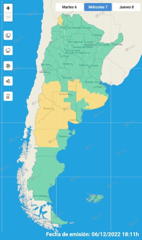 El Servicio Nacional Meteorológico emitió una alerta amarilla por fuertes vientos que tendrán lugar en el sur de la provincia de Mendoza. "El área será afectada por vientos del sector oeste con velocidades entre 35 y 60 km/h, con ráfagas que pueden superar los 70 km/h", destaca la publicación oficial.