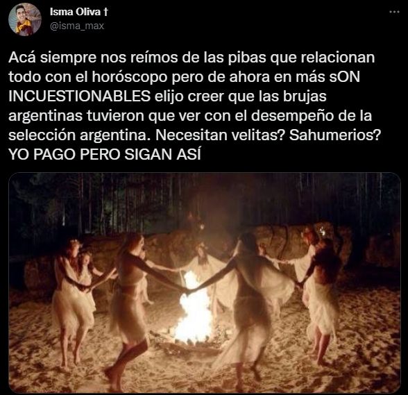 -Por un lado me alegra que esté sucediendo esto porque quiere decir que la gente está consciente del plano energético y está bueno que nos una como nación y como identidad, pero también me parece que está bueno entender que somos todos de un mundo, no perder la unidad. Está bueno la unidad que está generando en Argentina, pero ¿Por qué estamos queriendo lastimar la rodilla de otras personas? Todo esto indica que está pasando algo. Estamos teniendo un despertar y me parece genial que con el mundial vengan los varones también a todo este mundo mágico y no quede reducido solo a algo de mujeres. Los brujos siempre existieron también.