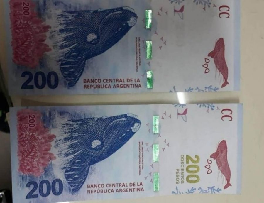 Entre estos billetes que se comparten, se encuentra el billete de $200 que en su frente no tiene impreso el numero 200 ni las palabras “doscientos pesos”. En el billete correcto esto está escrito en esa tinta particular que cambia del verde al dorado según cómo se lo mire.