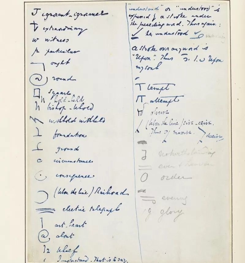 Encima, el novelista lo personalizó, alterando las formas de los símbolos e inventando sus propios caracteres arbitrarios.