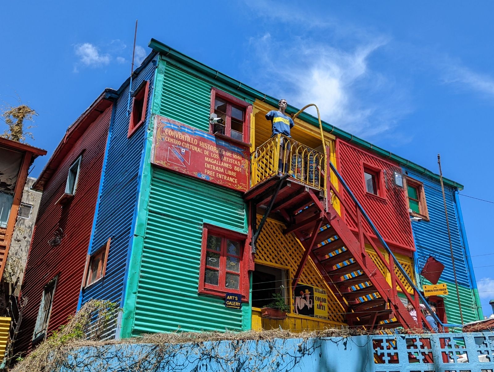 Una vez más, vuelve al tema central. "La inflación golpea", insiste. "Si sube 50% en un año y tu salario lo mantienen igual, ese año tendrías la mitad de poder adquisitivo que el año pasado. ¡Más te vale conseguir esa subida de salario! De locos para alguien que venga de Europa o USA, pero el pan de cada día de un argentino", comenta reconociendo cómo la inflación y las cuestiones económicas y financieras influyen en la idiosincrasia local. "¿Quieres comprarte una casa? Estupendo, pero tendrás que pagarla 'a tocateja': olvídate de pedir una hipoteca cuando los intereses anualizados van a ser variables y parejos o superiores a la inflación. ¿Te parece mucho tu hipoteca con intereses al 2% anualizado? ¡Pues imagina al 50%!". Comenta algo que en Argentina es evidente pero no en el resto del mundo: "Nadie compra casas con hipoteca en Argentina", Para eso eligió una típica postal de La Boca. ¿Acaso hay algo más pintoresco y gráfico?