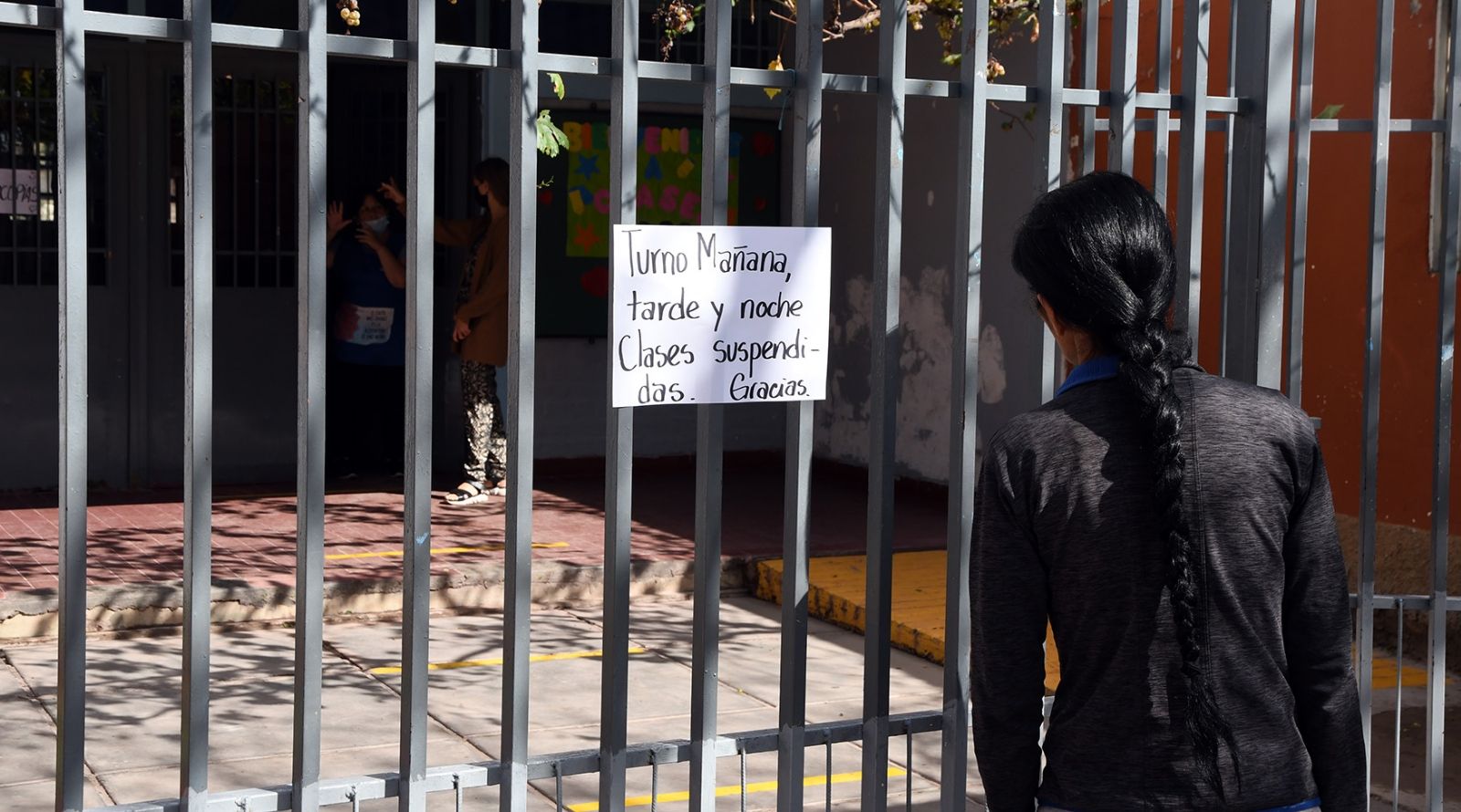 En la puerta del jardín ubicado en el Barrio Patrón Santiago una de los docentes llora al ver los daños que dejó el granizo en el lugar. Acá también las clases tuvieron que suspenderse, “es muy riesgoso para los chicos asistir en estas condiciones, tenemos caños de luz colgando y con agua, la media sombra nueva se descolgó y está al borde de caer sobre el patio”, cuenta desde la vereda mientras barre las hojas que han caído.