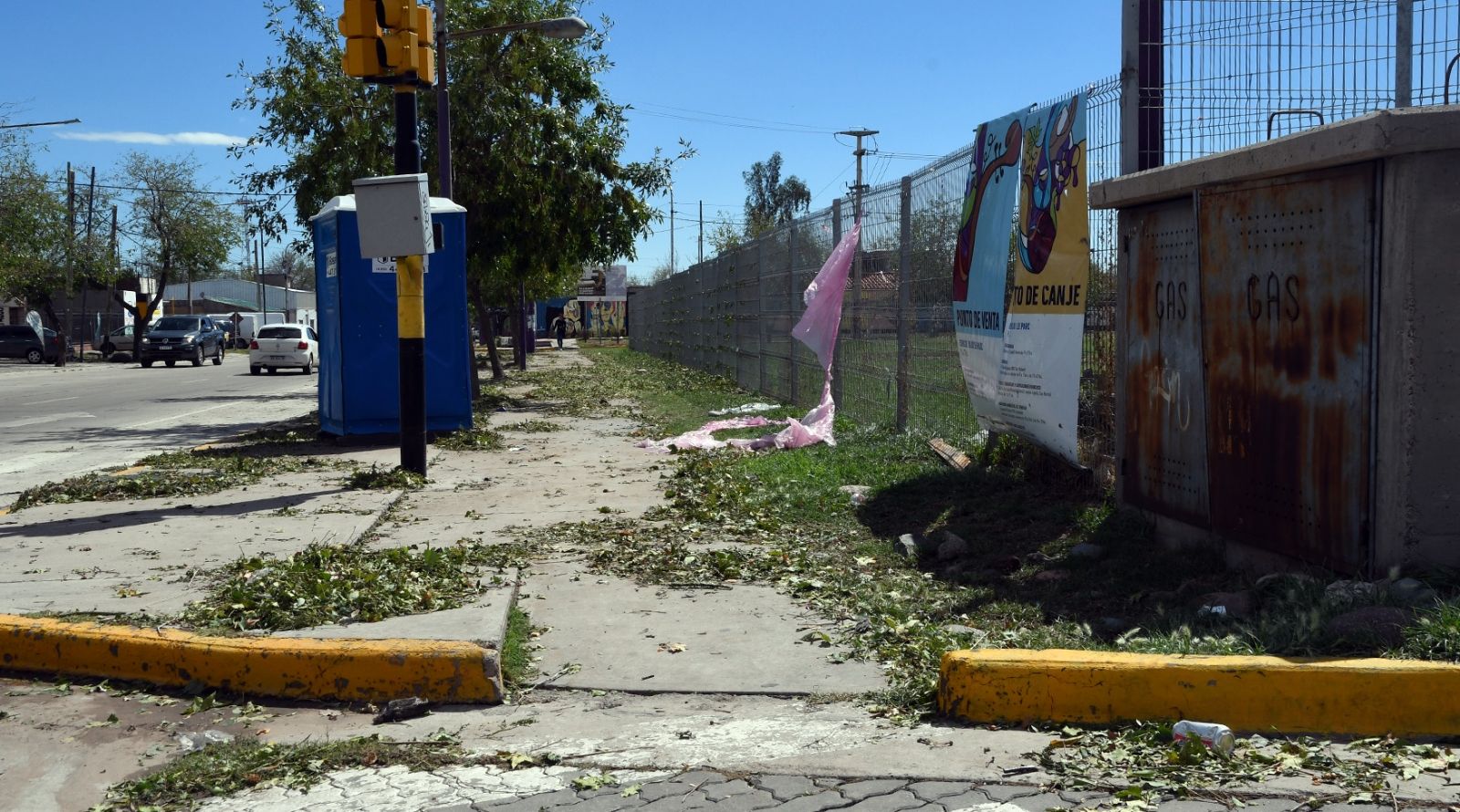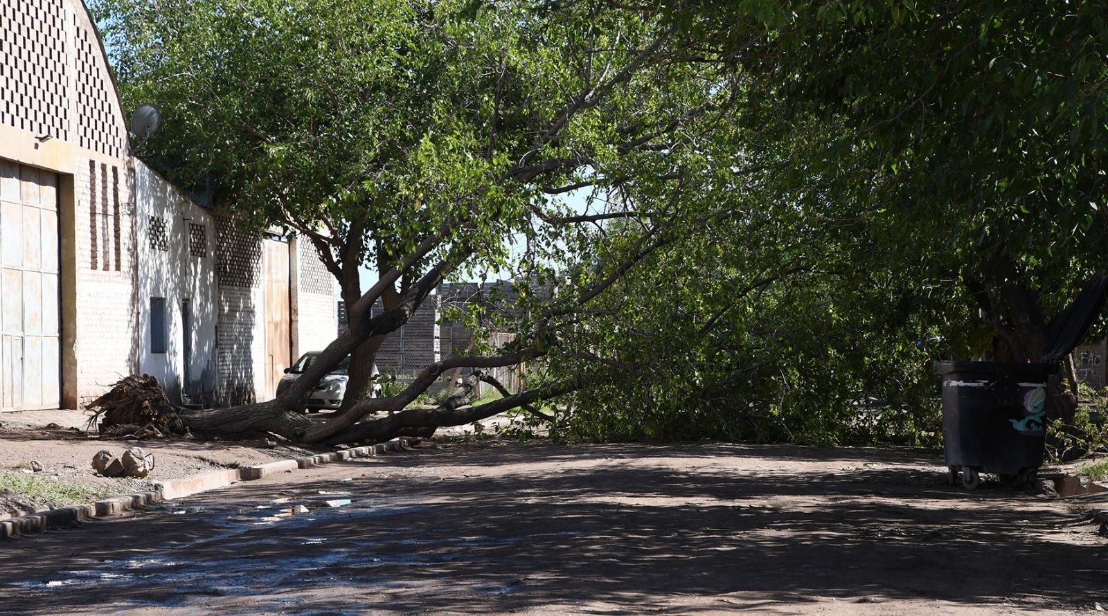 El día después de la tormenta las calles muestran postales que no dejan de sorprender, una tormenta de gran magnitud y cantidad de agua y granizo dejó árboles caídos y otros sin hojas, acequias tapadas, calles y veredas con con alfombras de hojas, vidrios rotos, techos caídos, inundaciones y cortes de luz en escuelas y otros establecimientos.
