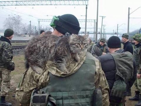 El periodista David Leavitt también se conmovió con las mascotas. Seleccionó y compartió una serie de imágenes que parecen una pausa en medio del horror de la guerra. En las fotos se ve a soldados con gatos.