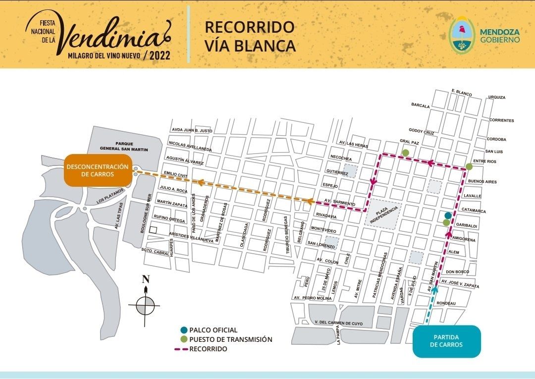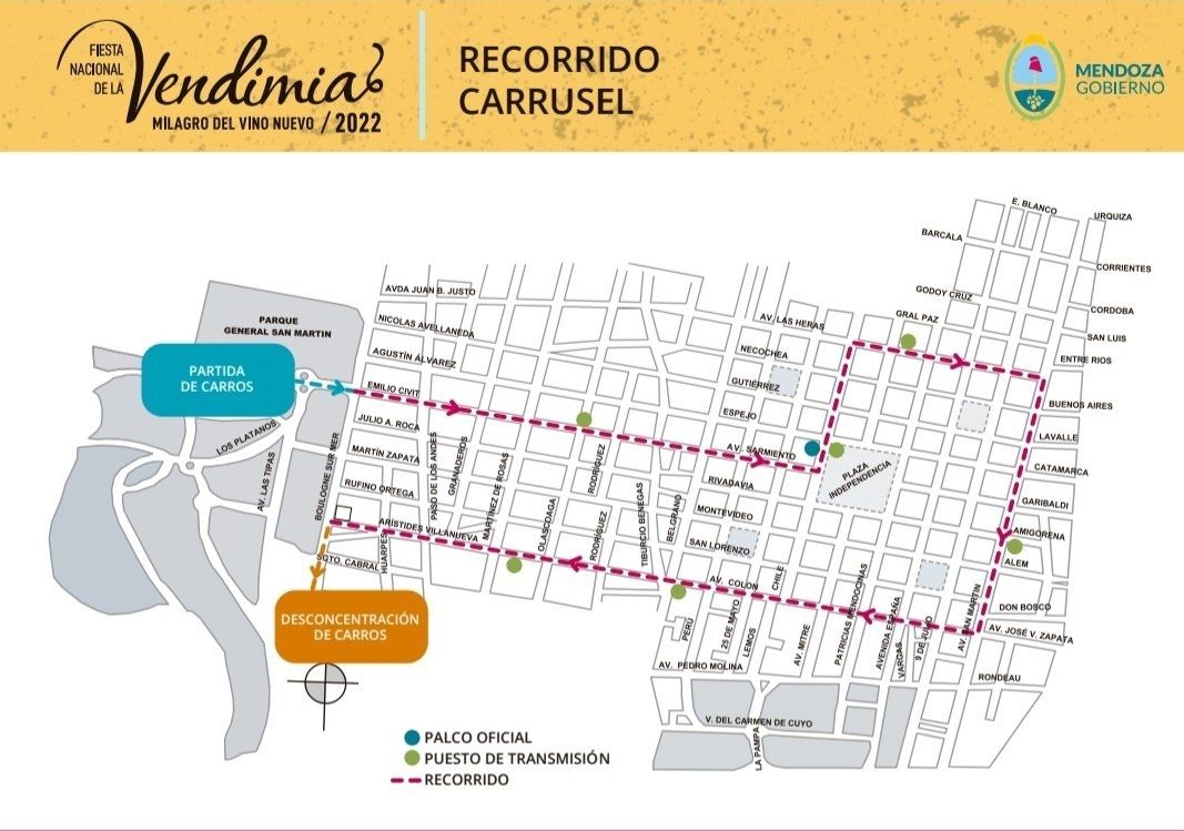 Desde la tarde del viernes y hasta el mediodía del sábado, algunas calles de la Ciudad de Mendoza serán cortadas y quedarán intransitables debido a los actos vendimiales.