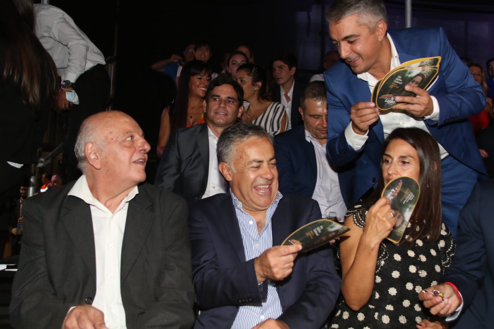 Aunque el clima político en el que se desarrolla la Vendimia no es el mejor, en el palco hubo camaradería; al menos al principio. Los intendentes de Tunuyán, Martín Aveiro, y de Luján, Sebastián Bragagnolo, están en veredas políticas distintas, pero se sentaron juntos.