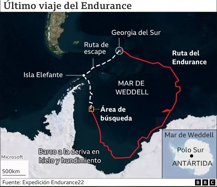 El Endurance fue avistado en el mar de Weddell a una profundidad de 3.008 metros.
