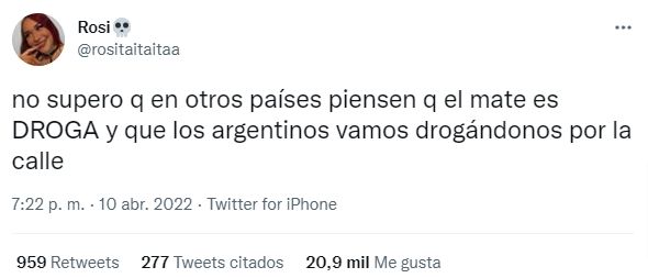 El papel describe perfectamente la situación de varios argentinos que emigran fuera del país, como el caso del usuario, que vive en Inglaterra, que se encuentran constantemente con el desconocimiento de extranjeros hacia la bebida nacional más popular. Esto hace que muchas veces piensen que se trata de un tipo de droga que se consume a través de la bombilla, lo que genera algunas malas primeras impresiones. Estas son algunas de las reacciones que puede causar el mate para una persona que no lo conoce.