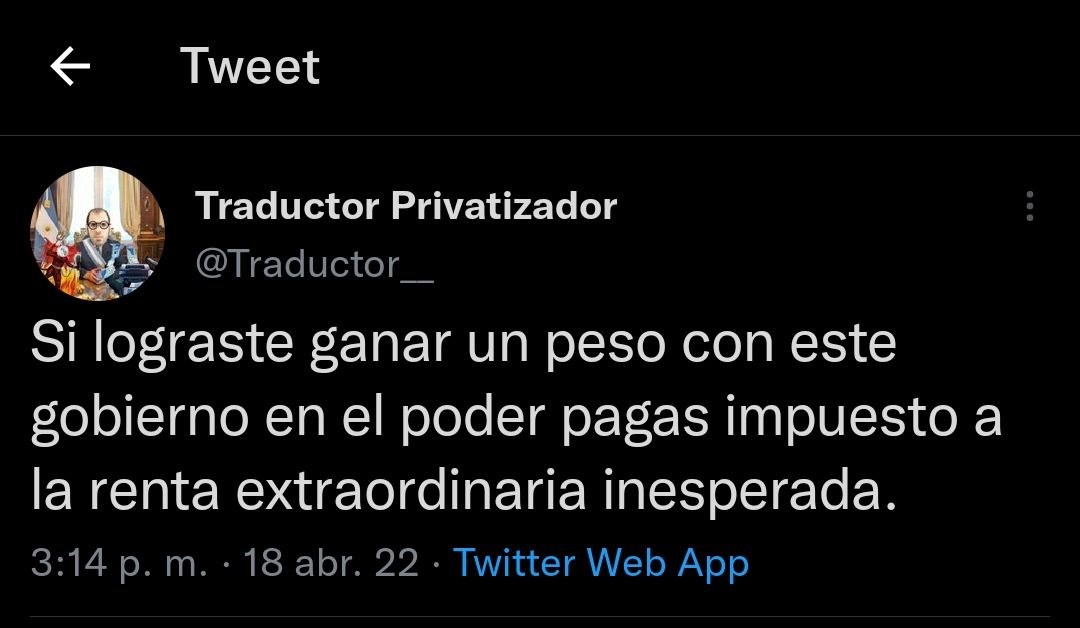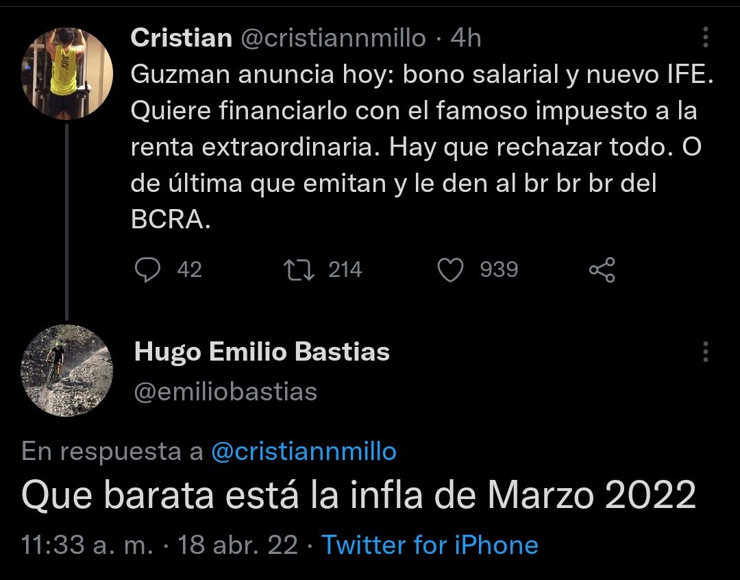 Tras el anuncio del impuesto a la renta "inesperada" o extraordinaria las redes volvieron a reaccionar. El ministro Martín Guzmán explicó "que hay ganancias inesperadas que no son fruto de inversión adicional o más contratación de empleo sino que no son fruto de un shock, sobre todo por la guerra" y que allí se aplicará este nuevo impuesto. Ante esta situación, el descontento y las críticas de la gente en las redes sociales no tardó en aparecer. Muchos aprovecharon para ironizar con el hecho mostrándose en contra de esta decisión.