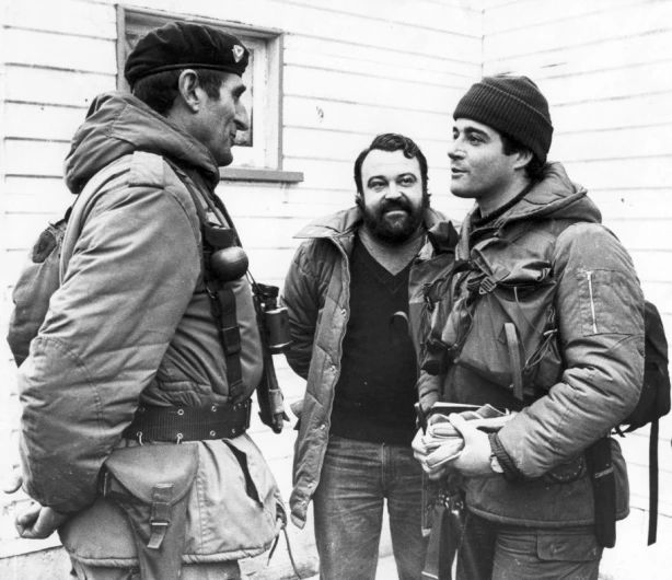 García Malod (de barba) en Malvinas, junto al coronel Seineldín. Con el grupo de periodistas que cubrieron el conflicto tuvieron varios episodios en donde corrieron peligro sus vidas.