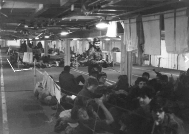 Los ingleses les comunicaron que ese grupo de 150 hombres se quedaría para enterrar a sus compañeros y levantar las minas que habían puesto los soldados argentinos. Los jóvenes soldados andaban a ciegas, no tenían los planos de las bombas y comenzaron a “volarse los pies”. Siguieron del mismo modo durante 10 días, enterrando a sus compañeros y desenterrando bombas contando con las adversidades del clima hasta que un soldado inglés se voló los pies y se paró todo.