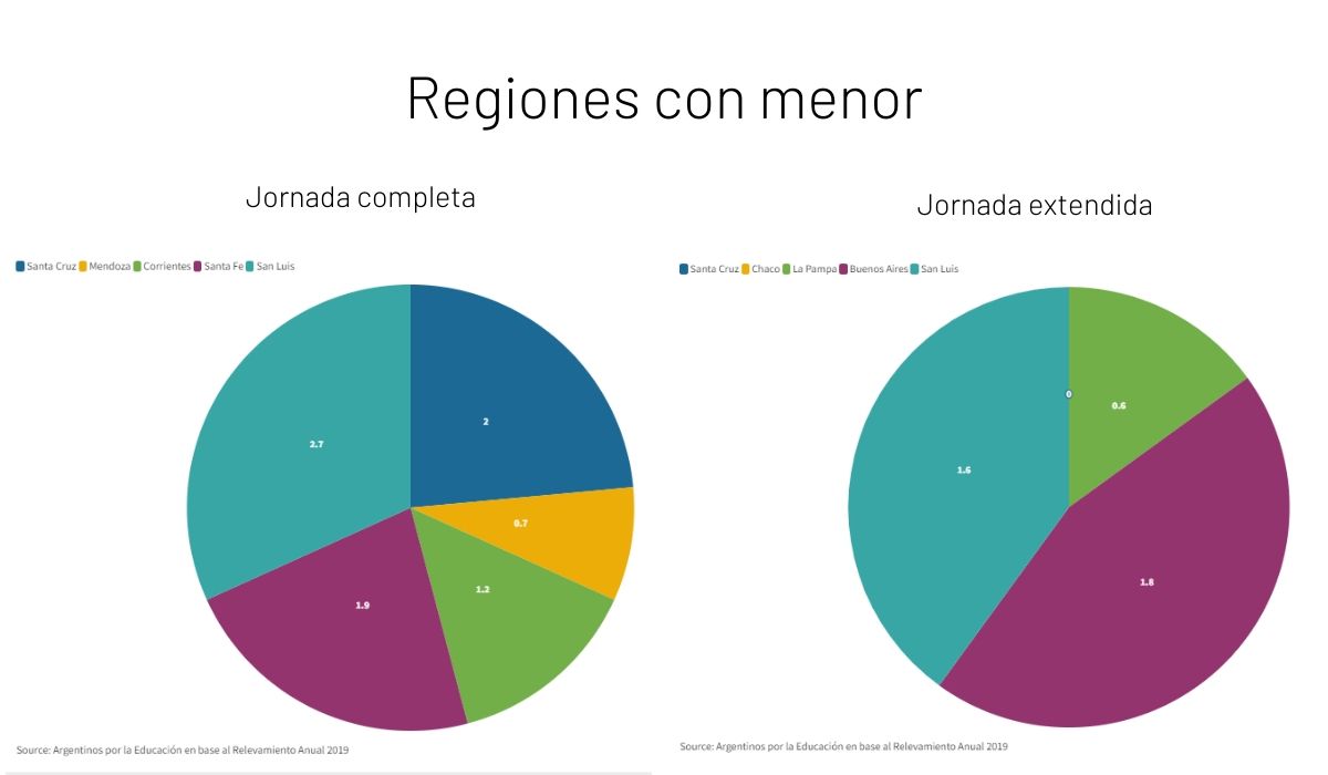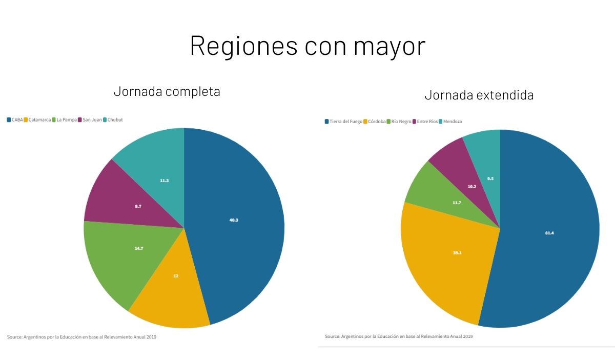 Del informe se desprende que la Ciudad Autónoma de Buenos Aires es la jurisdicción con mayor porcentaje de acceso a jornada completa, con un 40,3% del total de los alumnos. Mientras que Mendoza se encuentra en el polo opuesto con el 0,7% de los alumnos bajo esta modalidad.