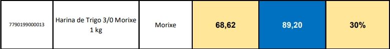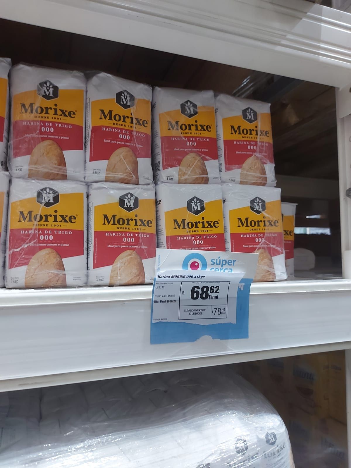 Uno de los productos que sí cumplen con la lista publicada es la harina Harina de Trigo 3/0 Morixe 1 kg, que se publica a $68,62 tanto en lo publicado por la Secretaria, así como en los mayoristas.