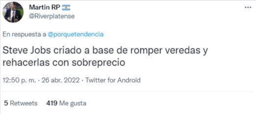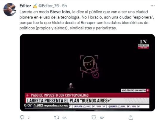 Un ejemplo es este video, que respondía a la publicación del político, y escribía irónicamente "Steve Rodríguez Larreta" junto con un video de una presentación del fallecido Jobs con los anuncios realizados el día de hoy por el Gobierno de la Ciudad.