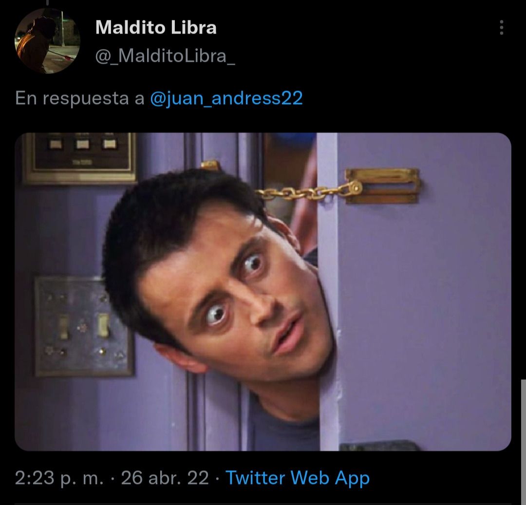 Alguien hace una referencia a la serie Friends, mostrando la imagen de uno de sus personajes asomando la cabeza por una puerta, como si se tratara del muchacho del tren: