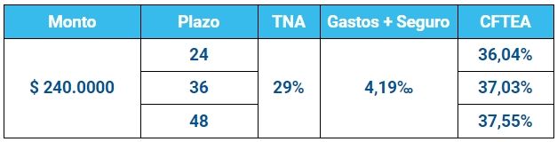 Los interesados pueden solicitar préstamos desde $5.000 y hasta $240.000 que deberán pagar en 24, 36, ó 48 cuotas que no superen el 30% de ingresos mensuales. Los interesados pueden simular la cuota utilizando la calculadora de Anses.