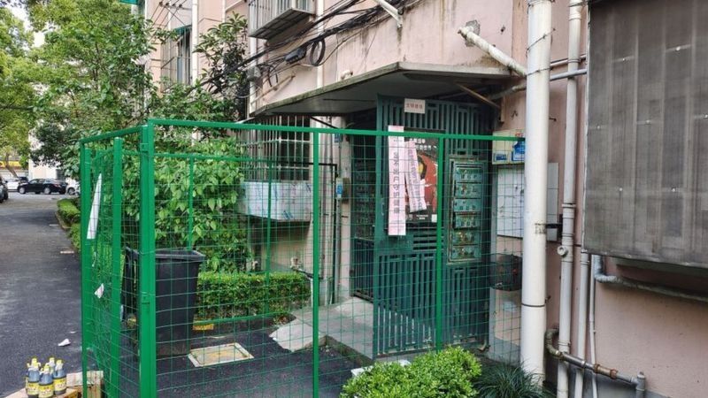 Rejas verdes en una vivienda en Shanghái por el confinamiento.