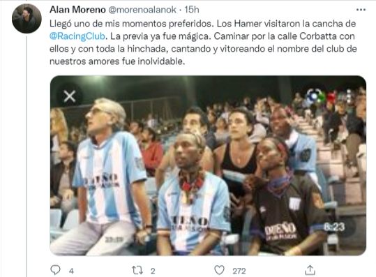 Otro gran shock cultural se dio cuando los Hamer fueron a la cancha a ver a Racing, club de la familia.