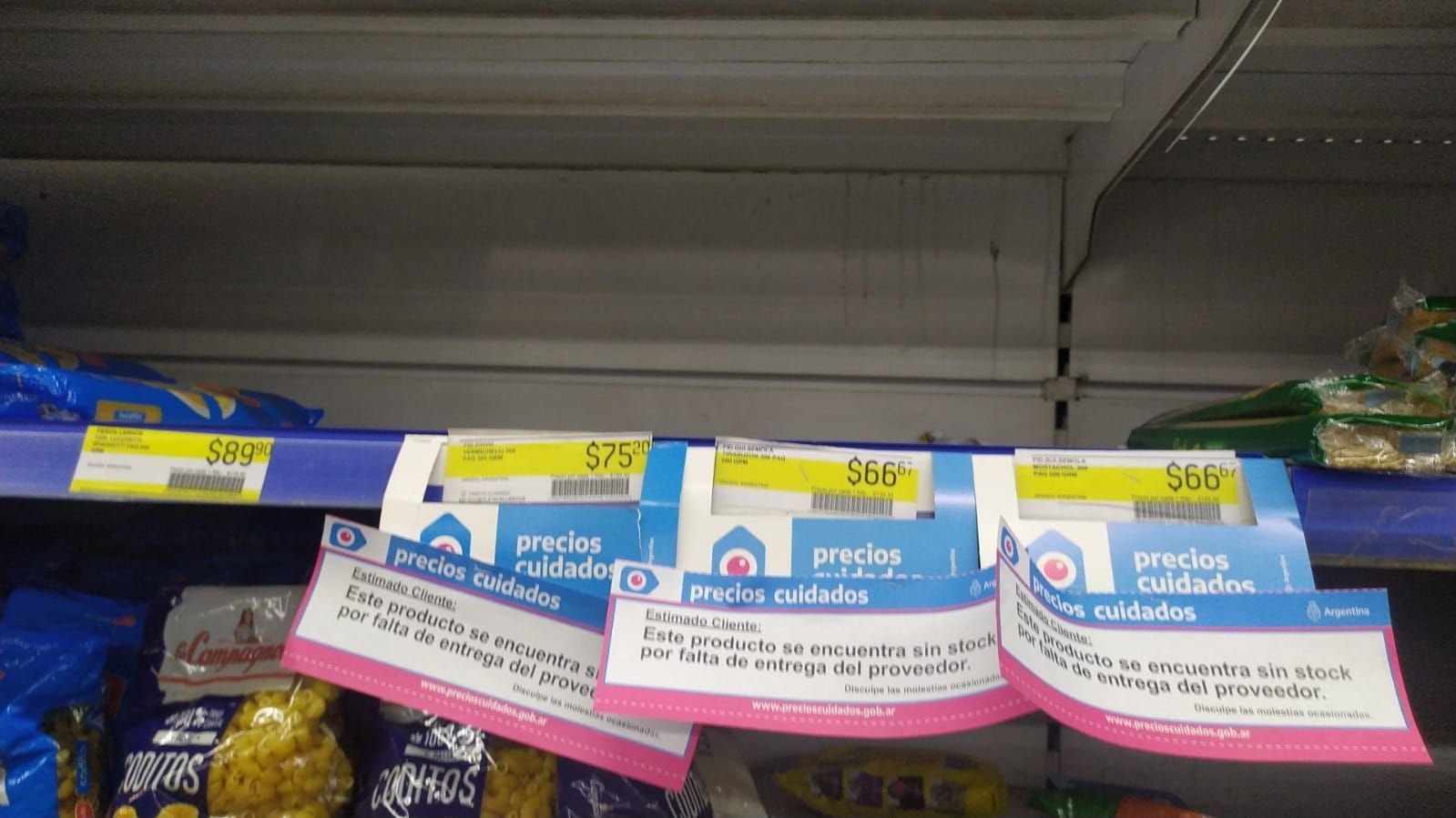 Mientras tanto, a lo largo del mes se notó también la falta de muchos productos, acompañados de los carteles que exclaman: "Este producto se encuentra temporalmente sin stock debido a un faltante justificado ante la Secretaría de Comercio de la Nación" o "Este producto se encuentra sin stock por falta de entrega del proveedor. Disculpe las molestias ocasionadas".