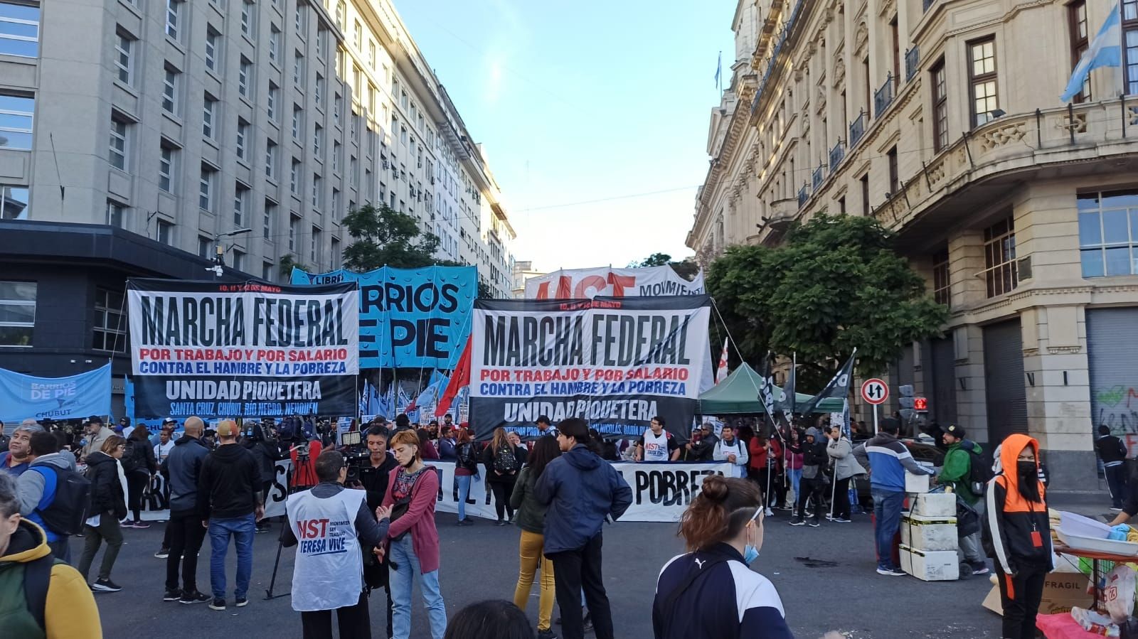 La Marcha Federal Piquetera comenzó este martes en varios puntos del país y hoy llega a la Ciudad de Buenos Aires. Hay manifestaciones en Once, Retiro y Puente Pueyrredón. El punto de reunión es en Plaza de Mayo. Si bien la convocatoria estaba programada para las 15h, aún no hay grandes concentraciones en la plaza. Apenas llegaron algunos grupos menores de manifestantes.