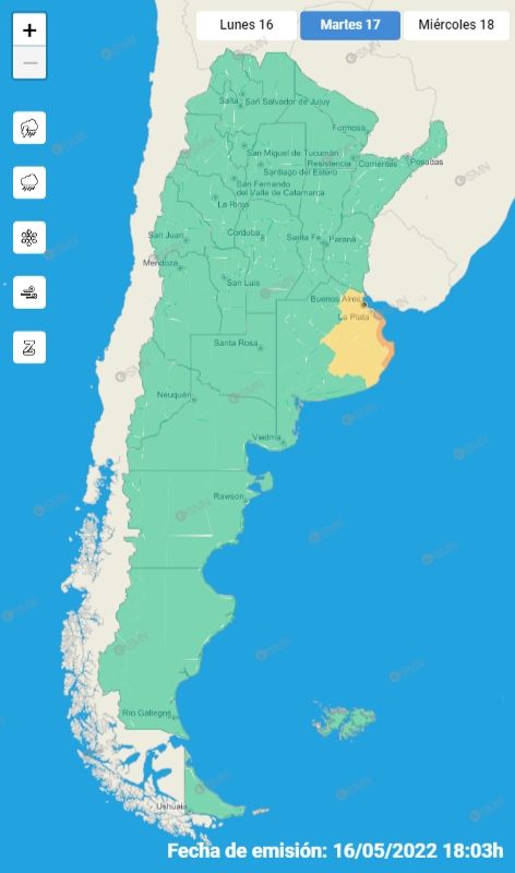 El fin de semana, el Servicio Meteorológico Nacional (SMN) lanzó una alerta meteorológica por un ciclón extratropical. El mismo es poco frecuente y puede tener fuertes ráfagas de 80 kilómetros por hora o más.