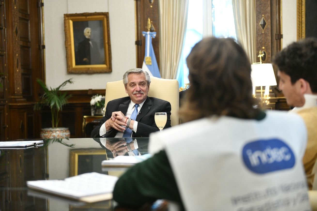 "Hoy realizaremos en todo el país el Censo 2022. Censistas estarán visitando a las argentinas y los argentinos para poder conocer nuestro presente. Es crucial que participemos todas y todos. El #CensoNacional nos permite pensar cómo podemos construir un mejor futuro", expresó el mandatario en su cuenta de Twitter. En las imágenes puede verse al presidente reunido con un grupo de censistas en la Casa de Gobierno.
