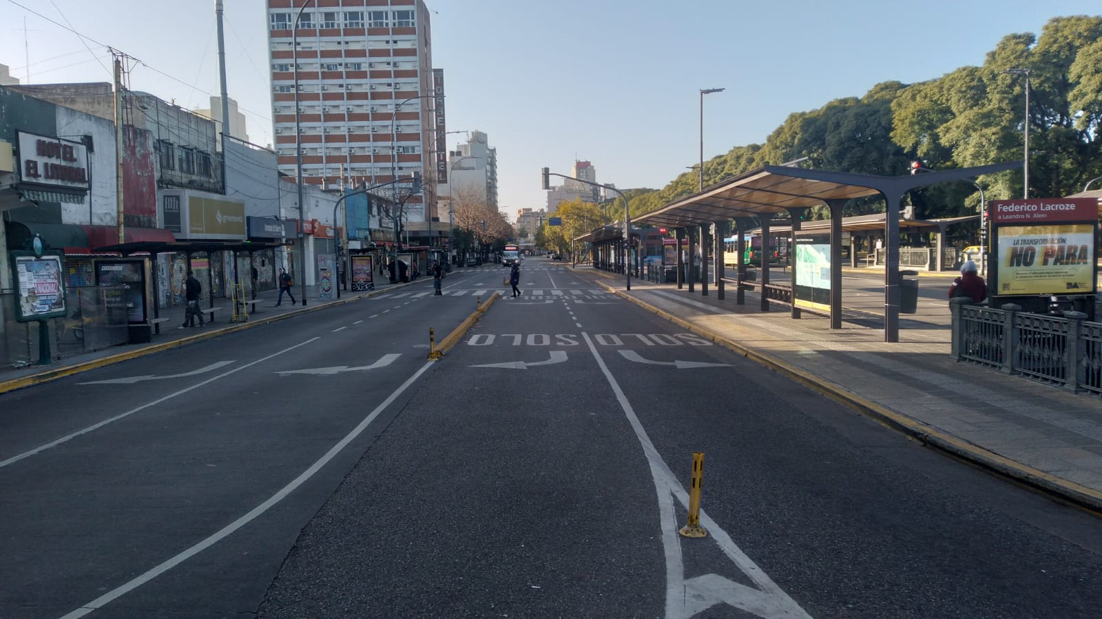 Sobre la esquina se erige el Imperio de la Pizza, un clásico de la zona. A pesar de la prohibición de abrir, está abierta. Hay, incluso, algunas personas desayunando pero son pocas: hay mas empleados que asistentes.