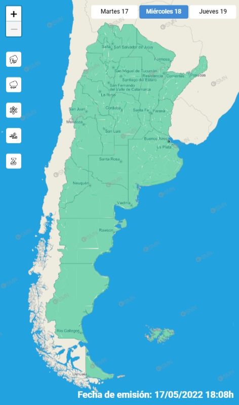 No hay alerta meteorológica por fenómenos que pueden provocar daños o riesgos de interrupción momentánea de actividades cotidianas en la provincia.