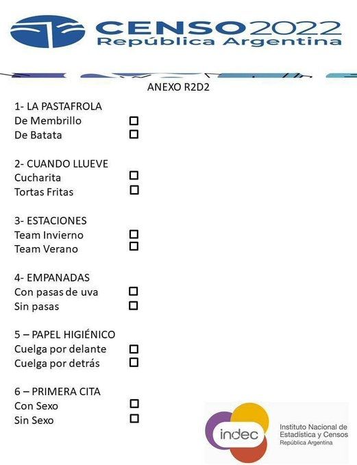 Este miércoles en Argentina se desarrolla el Censo 2022 y, a pesar de tratarse de una importante tarea que brindará datos estadísticos sobre la población y condiciones de vida de los ciudadanos, el tema también ha servido para que el ingenio despegue en las redes sociales.